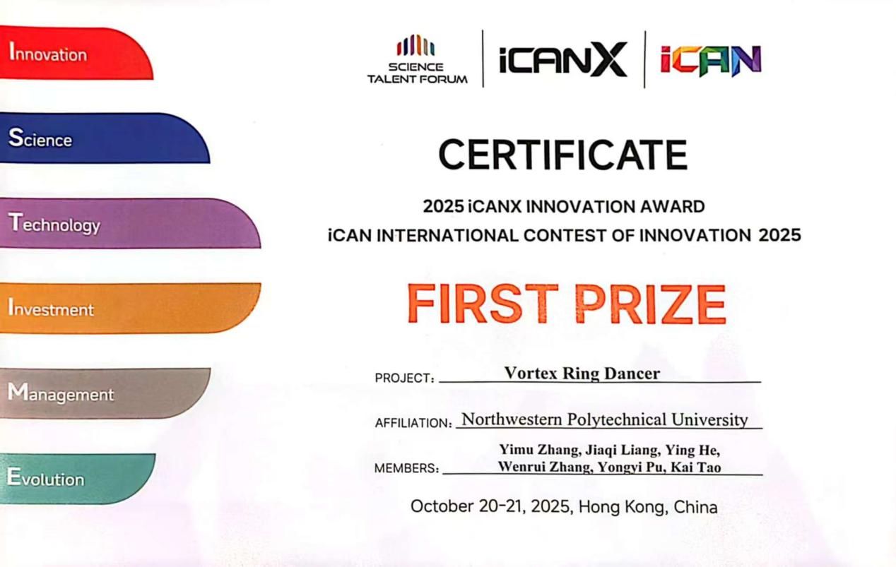 “Vortex Ring Dancer(涡环舞者)”项目团队经过校赛、省赛和国赛层层选拔,从全国1518所高校的32144支团队中脱颖而出,与来自慕尼黑工业大学、香港大学等全球近20所顶尖高校的队伍同台竞技,最终斩获国际总决赛冠军。这也是继2021年我院“鸿蒙之心—可集成式自然能量采集贴”项目荣获国际一等奖后,时隔四年再次站上该项赛事国际最高领奖台。