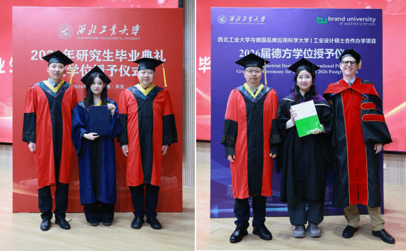 2026年3月24日上午,西北工业大学-德国品牌应用科学大学工业设计硕士研究生项目2026届毕业典礼暨学位授予仪式在西北工业大学友谊校区航空楼举行。色中色