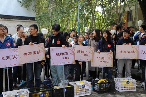 承办的柿子创意采摘大赛在温暖的秋日阳光中开始。此次活动全校各个学院都派出了代表队参加,恰逢校友周,来自全国各地的校友也加入到了此次摘柿子的比赛中,总计20个队伍、近100名师生参赛。